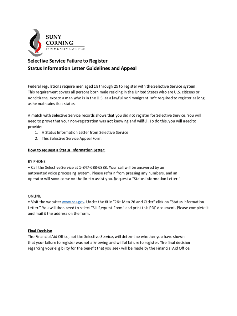 Get the free PDF Selective Service Failure to Register Status Information Letter ...