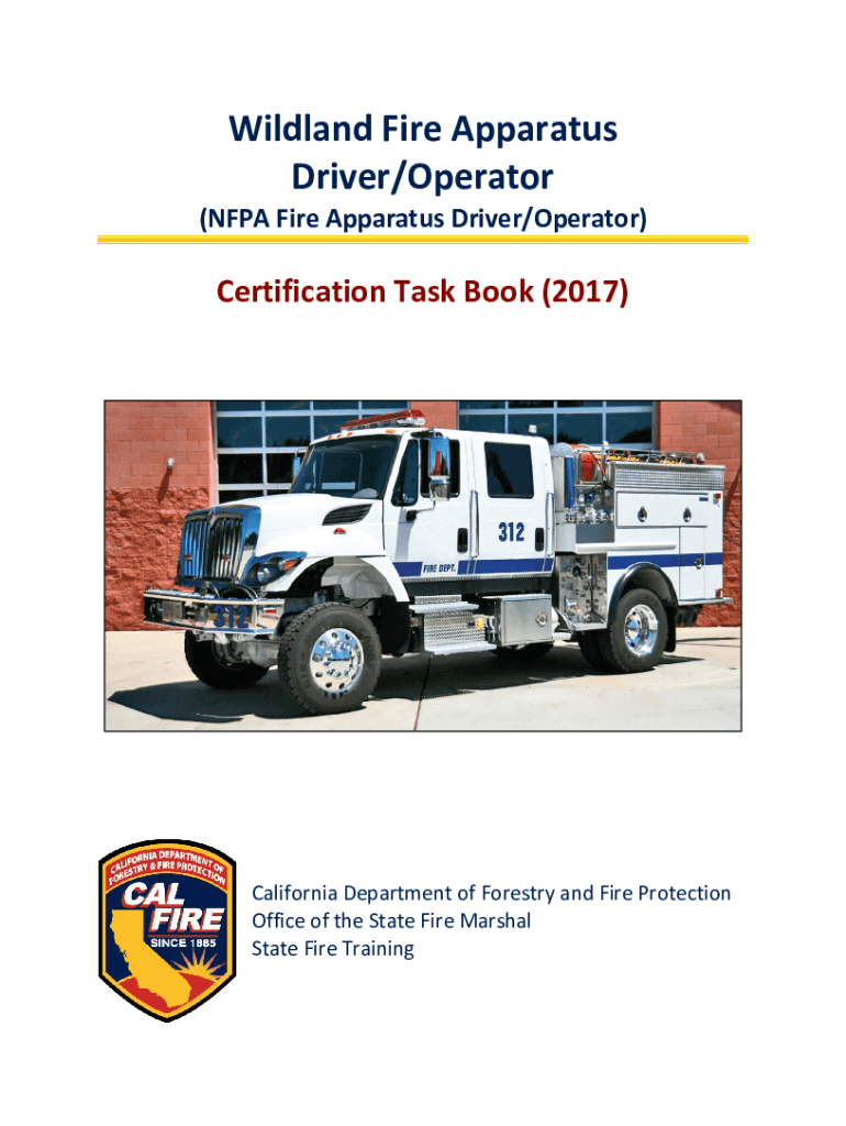 Wild land Fire Apparatus Driver/Operator(NFPA Fire Apparatus Driver/Operator)Certification Task Book (2017)California Department of Forestry and Fire Protection Office of the State Fire Marshal State