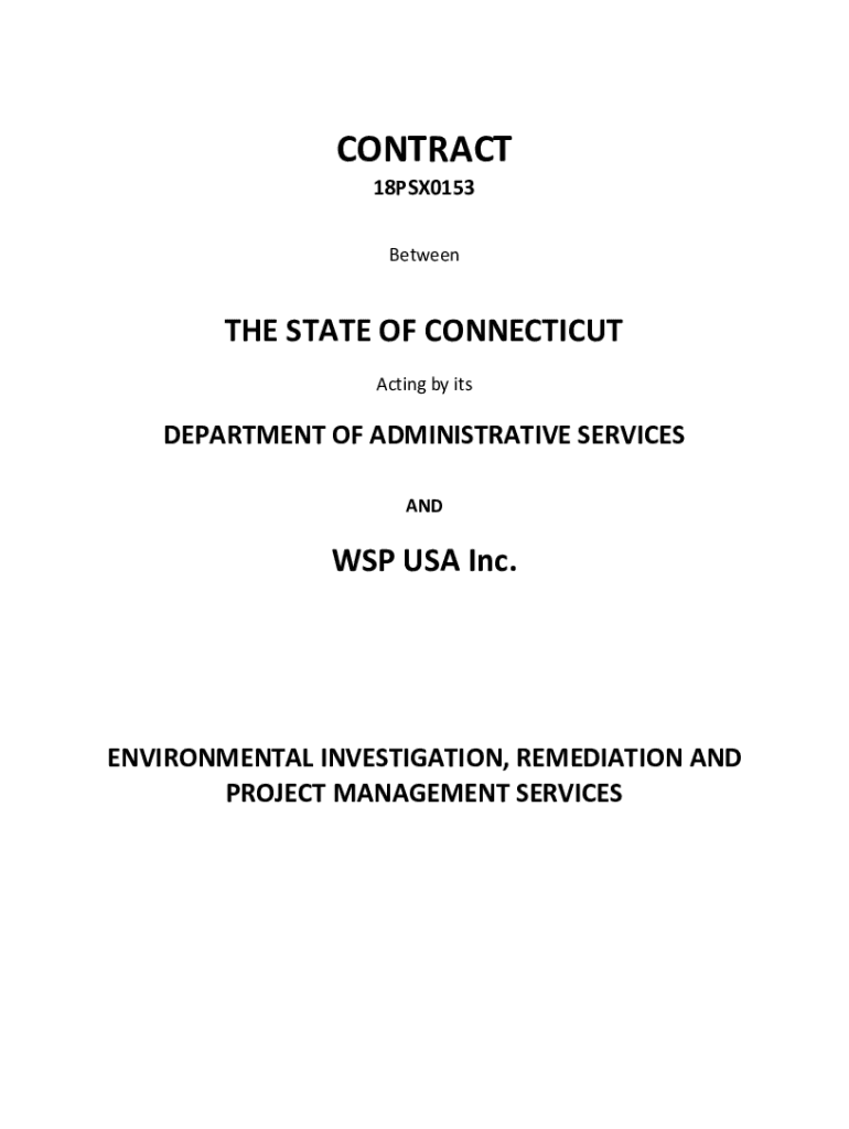 CONTRACT 18PSX0153 Between STATE OF CONNECTICUT Acting by department OF ADMINISTRATIVE SERVICES AND WSP USA Inc. ENVIRONMENTAL INVESTIGATION, REMEDIATION AND PROJECT MANAGEMENT SERVICESContract #