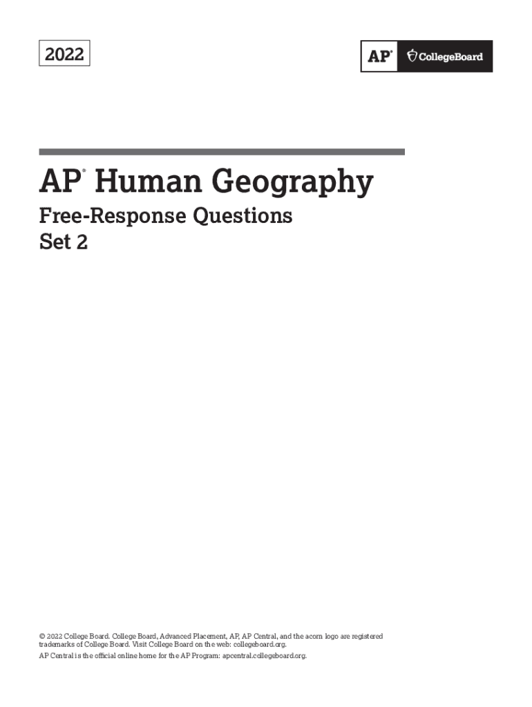 2022AP Human Geography FreeResponse Questions Set 2 2022 College Board. College Board, Advanced Placement, AP, AP Central, and the acorn logo are registered trademarks of College Board. Visit College
