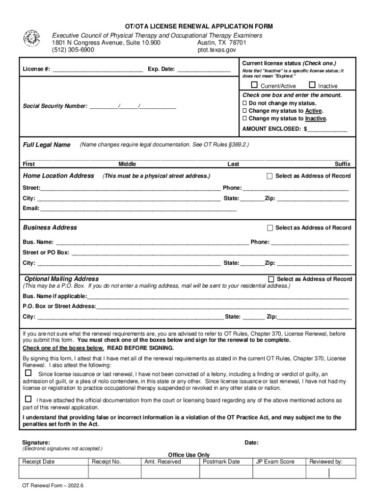Get the free OT/OTA License Renewal Application Form Instructions - ptot texas