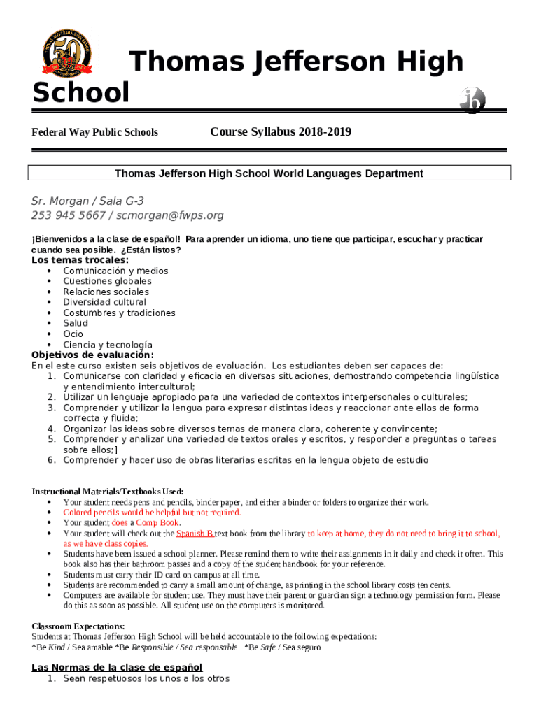 The www.fwps.orgtjhsThomas Jefferson High School / Homepage - Federal Way Public ... is a fillable form in MS Word extension that should be submitted to the relevant address to provide specific information. It has to be filled-out and signed, which can be done manually, or via a particular solution such as PDFfiller. It lets you fill out any PDF or Word document directly from your browser (no software requred), customize it according to your requirements and put a legally-binding e-signature. Once after completion, you can send the www.fwps.orgtjhsThomas Jefferson High School / Homepage - Federal Way Public ... to the appropriate person, or multiple ones via email or fax. The blank is printable as well because of PDFfiller feature and options offered for printing out adjustment. In both electronic and in hard copy, your form should have a organized and professional outlook. You can also save it as the template for further use, there's no need to create a new blank form from the beginning. You need just to edit the ready document.