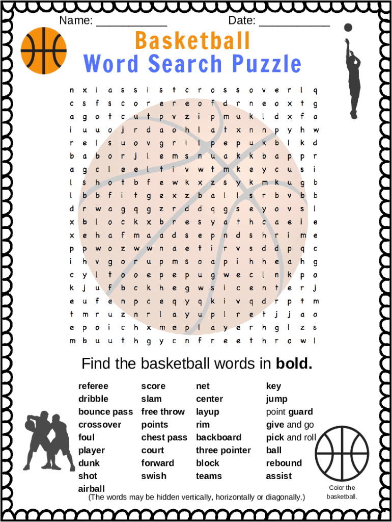 Simply look for the listed basketball words in the grid of letters and circle or mark them when found.