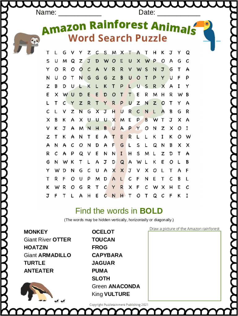 Get the free Amazon Rainforest Animals Word Search Puzzle from Puzzletainment