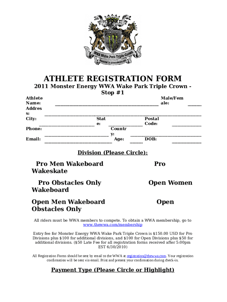 Instructions for the form ATHLETE REGISTRATION - thewwa.com