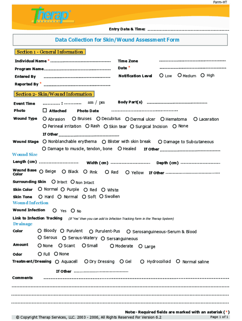 Get the free Data Collection for Skin/Wound Assessment Form - Therap Services