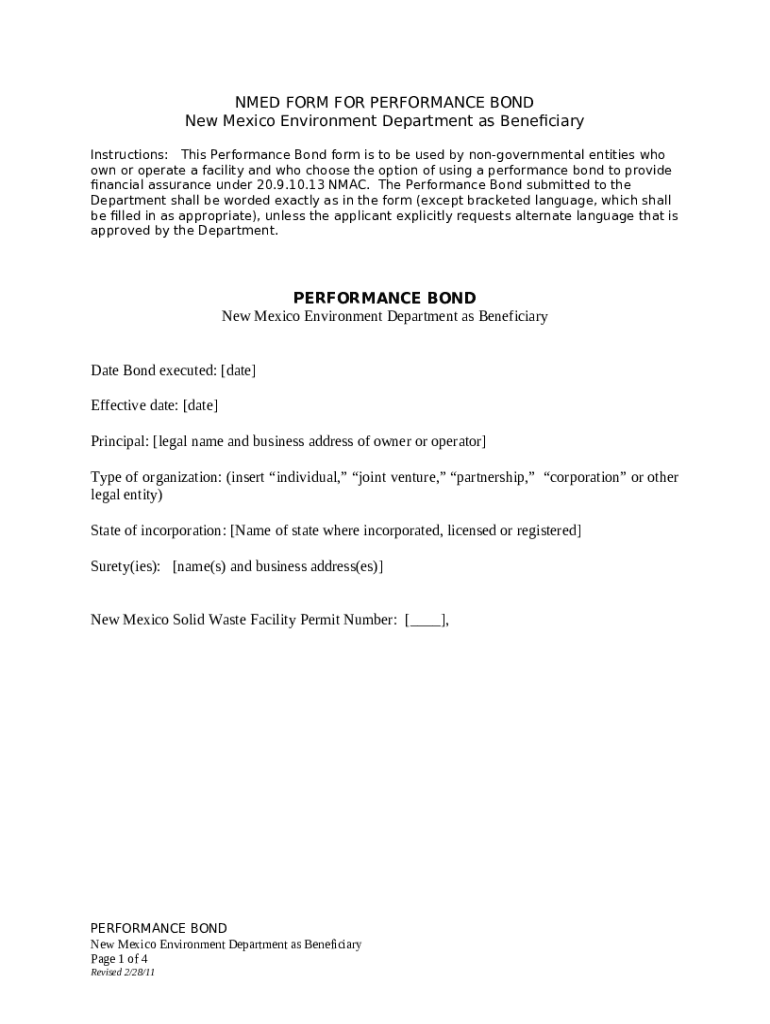 What is NMED FOR PERANCE BOND - Welcome to NewMexico.gov Form?
