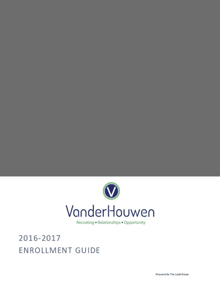 20162017 ENROLLMENT GUIDE Prepared by The Land GroupVanderHouwen is pleased to offer a comprehensive and flexible selection of health and welfare benefits to you and your family. Coverage options