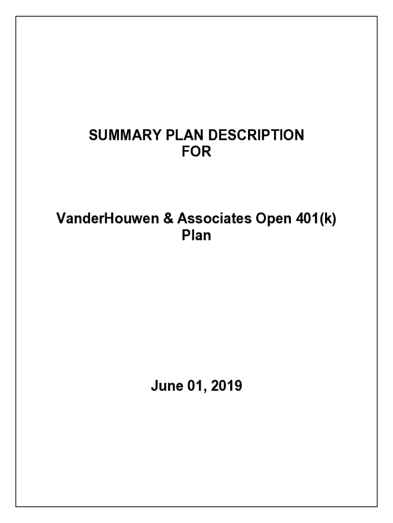 SUMMARY PLAN DESCRIPTION FORVanderHouwen & Associates Open 401(k) Plan June 01, 2019Table of Contents Article 1................................................................................................