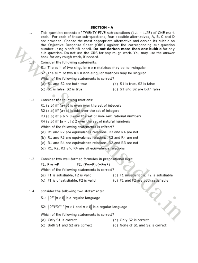 SECTION A question consists of TENTATIVE subquestions (1.1 1.25) of ONE mark each. For each of these subquestions, four possible alternatives, A, B, C and D are provided. Choose the most appropriate
