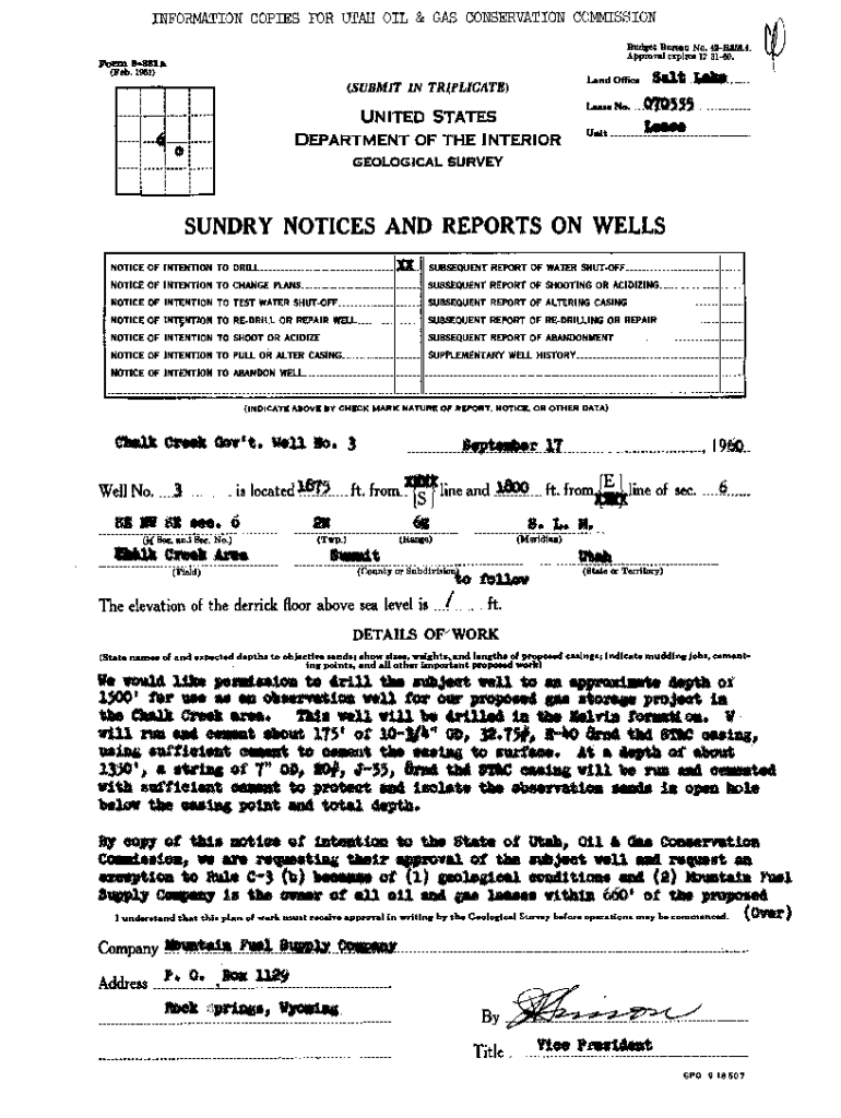 INFORMATION COPIES FOR UTAH OIL & GAS CONSERVATIONCOMMISSION Budget Bureau No. 42R358.4. Expires 123140. Approval9881aEbun(Feb.1951)UND(SUBMIT IN TR1PLICATE)UNITEDDEPARTMENT4STATES OF THE INTERIOR.