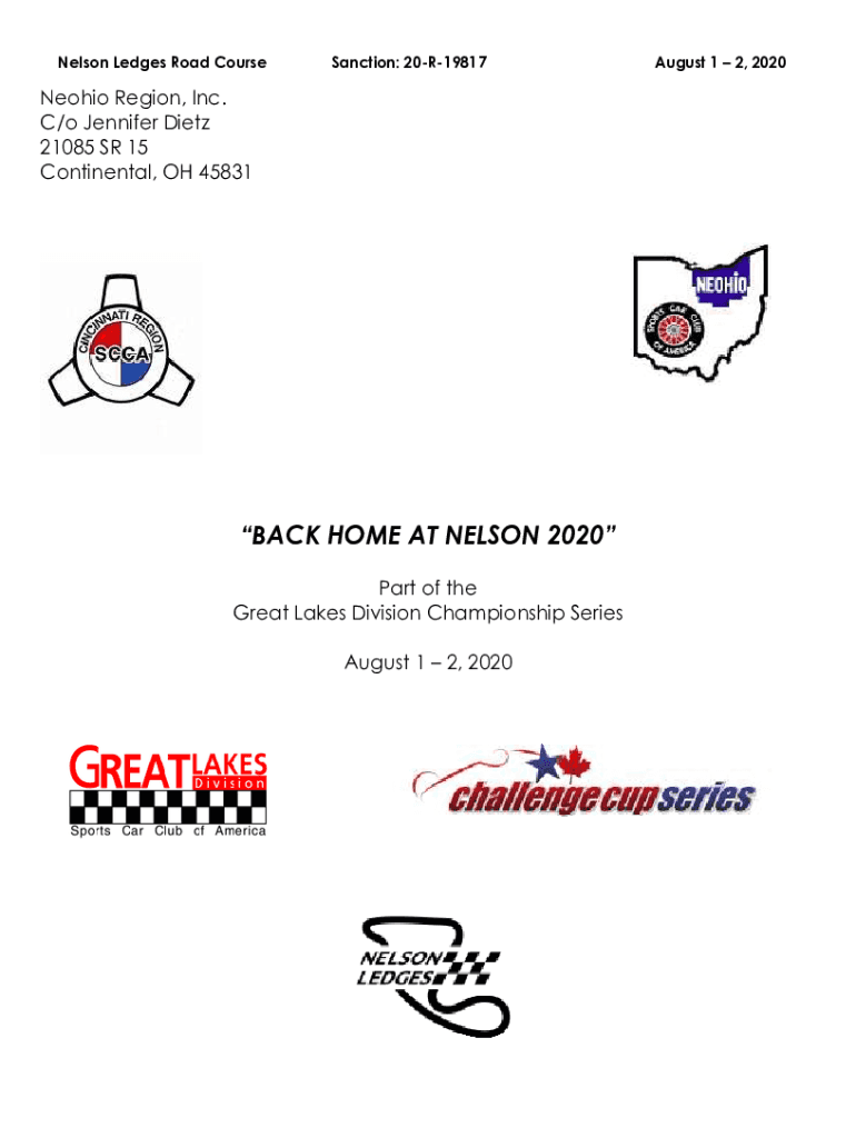 Nelson Ledges Road CourseSanction: 20R19817Neohio Region, Inc. C/o Jennifer Dietz 21085 SR 15 Continental, OH 45831BACK HOME AT NELSON 2020 Part of the Great Lakes Division Championship Series August