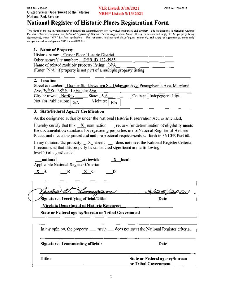 NPS Form 10900United States Department of the Interior National Park Service Listed: 3/18/2021 CNRHP Listed: 5/13/20210 MB No. 10240018National Register of Historic Places Registration Form This