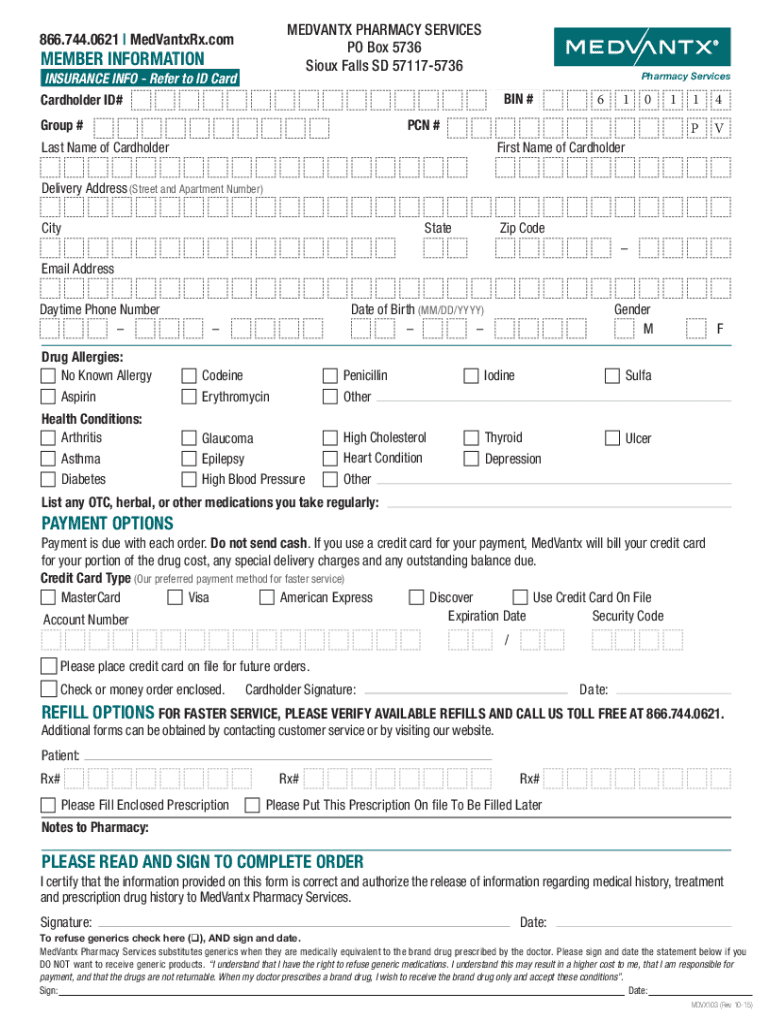 MedVantx Pharmacy Services MDVX103 2015-2026 free printable template
