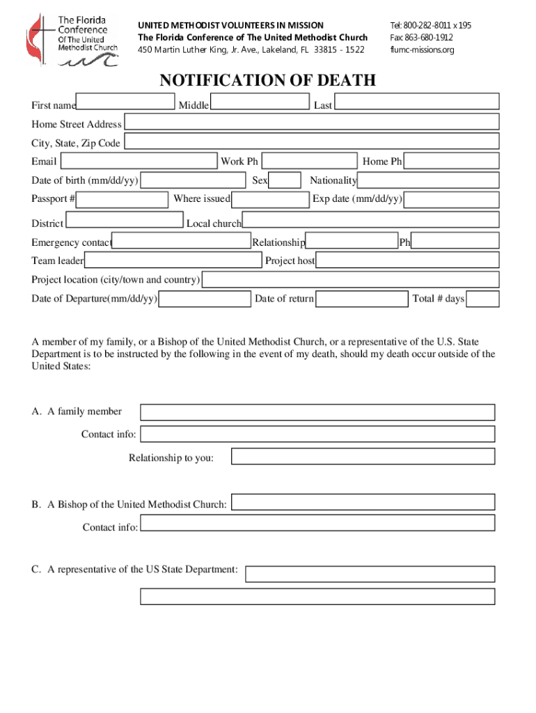 Get the free FL UMVIM forms - Notification of Death.doc