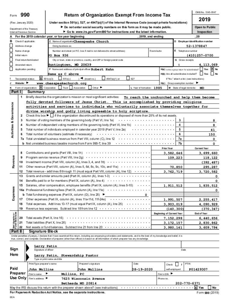 990FormDo not enter social security numbers on this form as it may be made public. Department of the Treasury