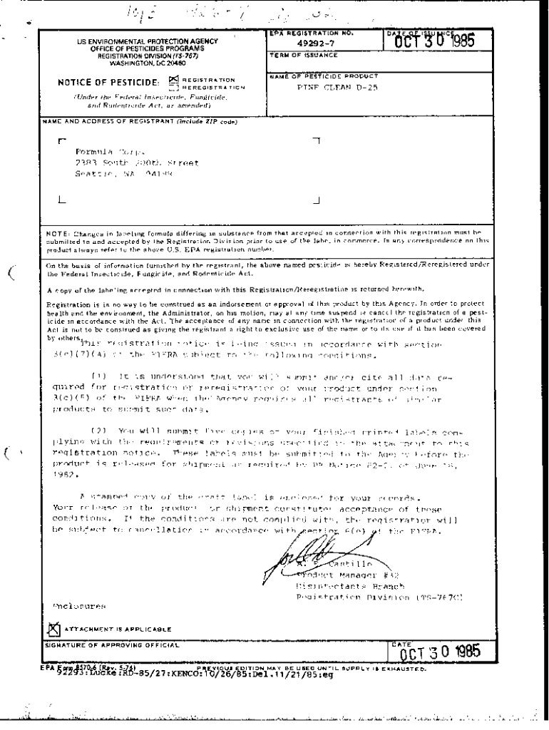 Get the free U.S. EPA, Pesticide Product Label, PINE CLEAN D-25, 10/30/1985