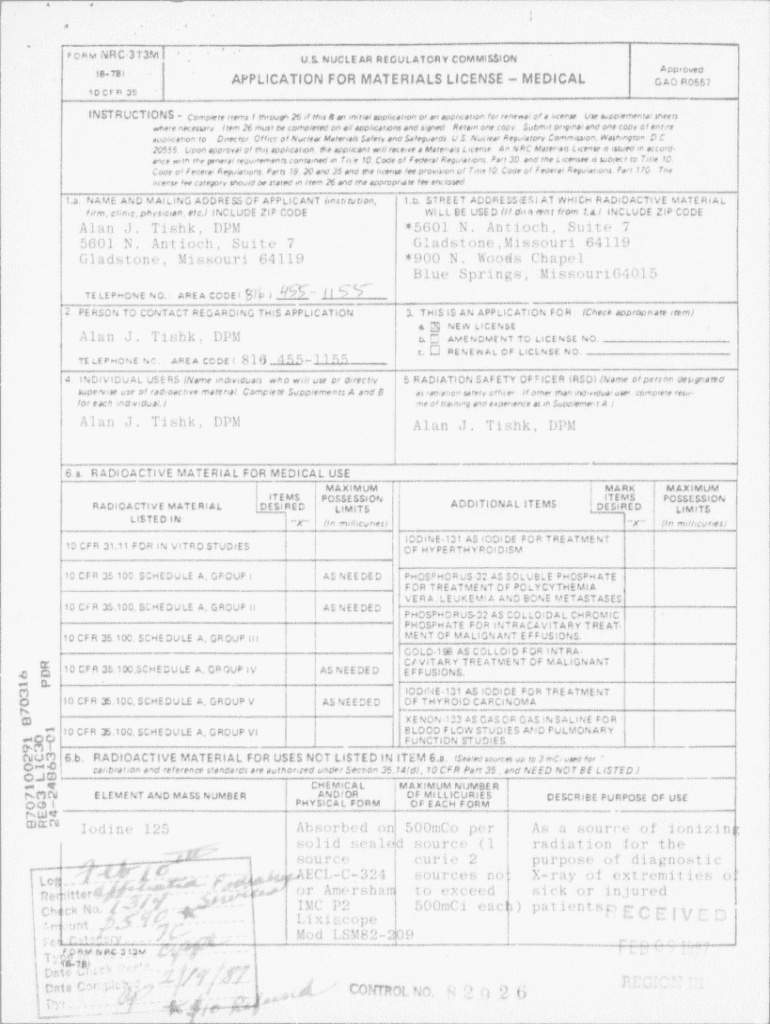 Get the free Application for license,authorizing AJ Tishk as user of 500 mCi I-125 in diagnostic ...