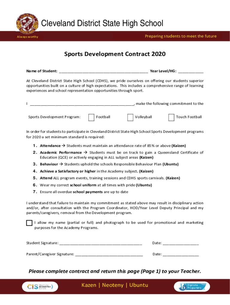Always worthy Cleveland District State High School PreparingstudentstomeetthefutureSportsDevelopmentContract2020 NameofStudent:___Daredevil/HG:___ AtClevelandDistrictStateHighSchool(CDs), weprideourselvesonofferingourstudentssuperior