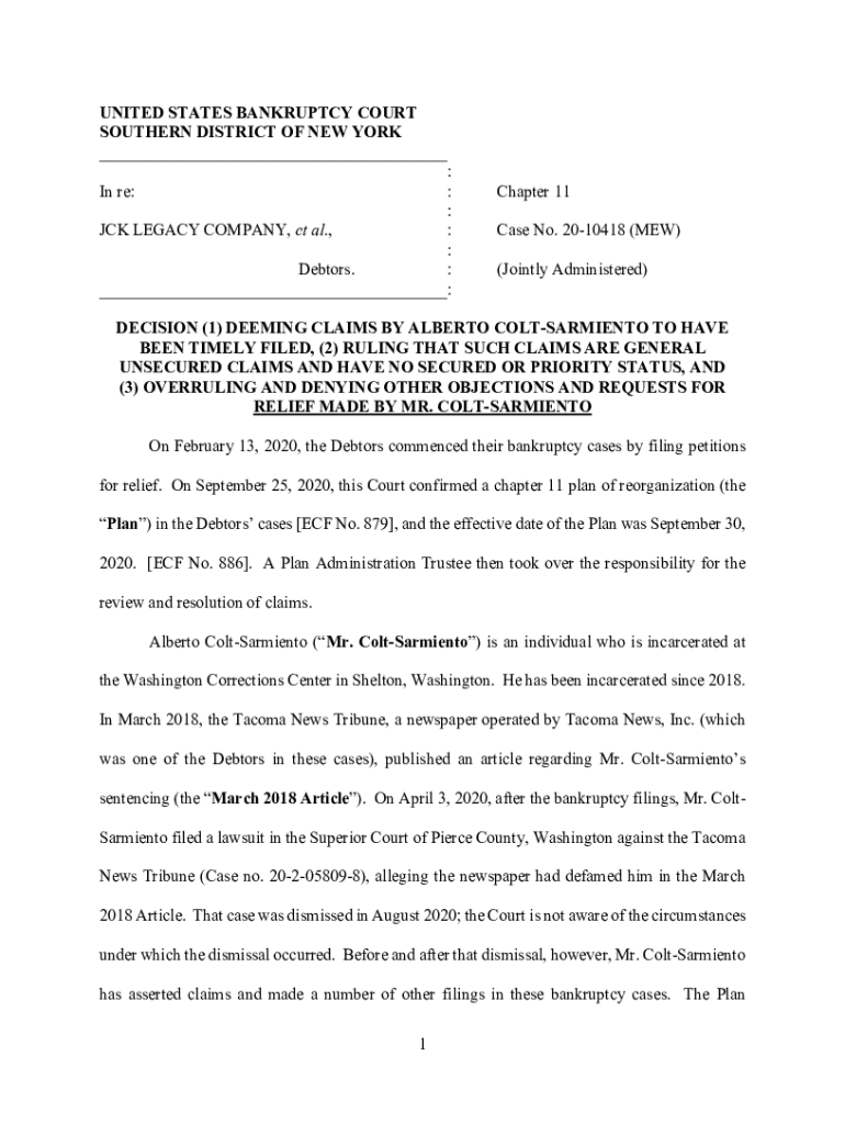 Get the free Decision re Colt-Sarmiento Claims and Objections