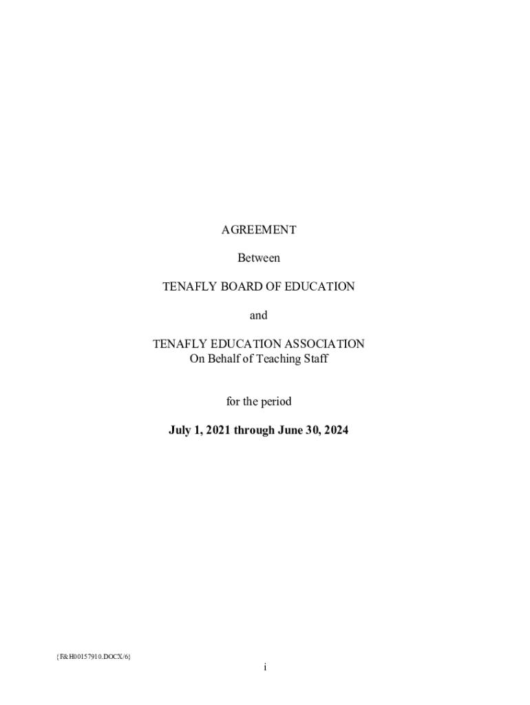 AGREEMENT Between TENABLY BOARD OF EDUCATION and TENABLY EDUCATION ASSOCIATION On Behalf of Teaching Staff for the period July 1, 2021, through June 30, 2024F&H00157910.DOCX/6iTABLE OF CONTENTS ARTICLE