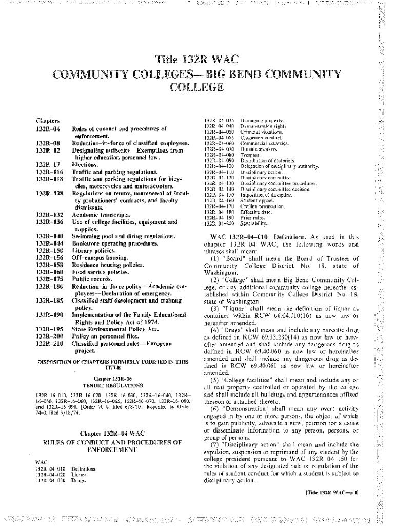 Title 132R WAC COMMUNITY COLLEGES BEND COMMUNITY COLLEGE Chapters 132R04 132R08 132R12 132R17 132R116 132R118 132R128 132R132 132R136 132R140 132R144 132R150 132R156 132R158 132R160 132R175 132R180