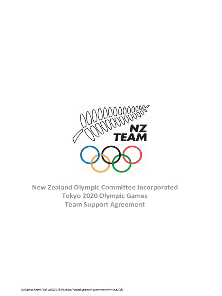 New Zealand Olympic Committee Incorporated Tokyo 2020 Olympic Games Team Support Agreement:Gamester/Tokyo2020/Selection/TeamSupportAgreement/Printed2021CONTENTSPAGEBackground 1. Definitions 2. Term