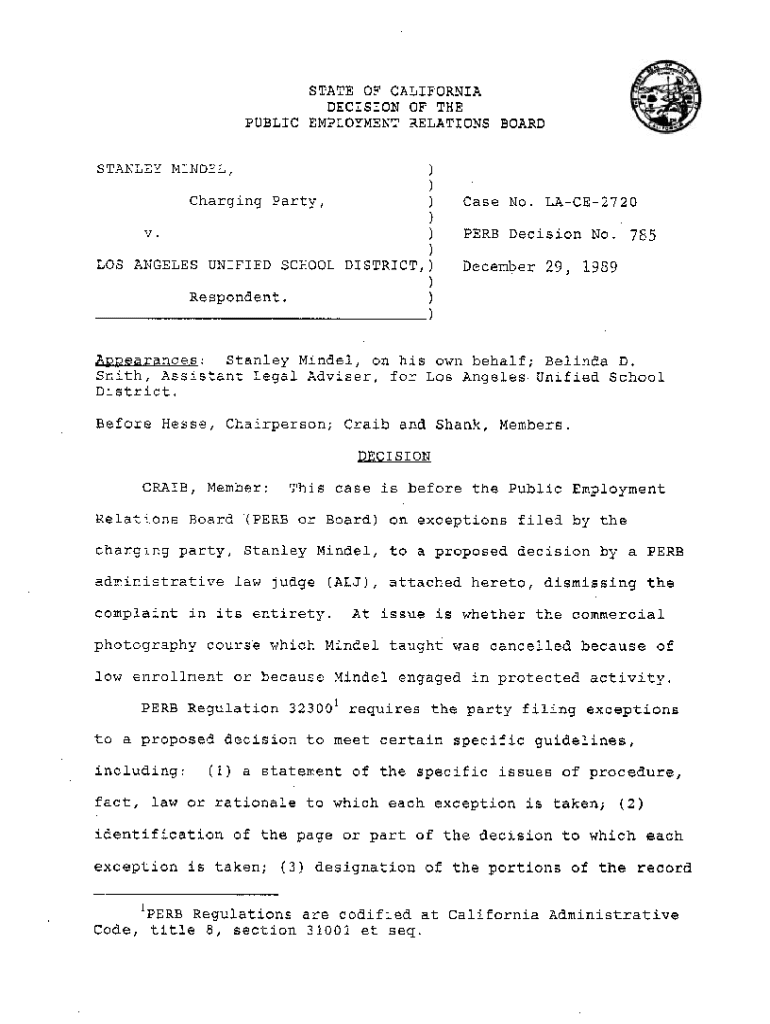 Get the free PERB Decision-0785E - Stanley Mindel, Charging Party, v. Los Angeles Unified School ...