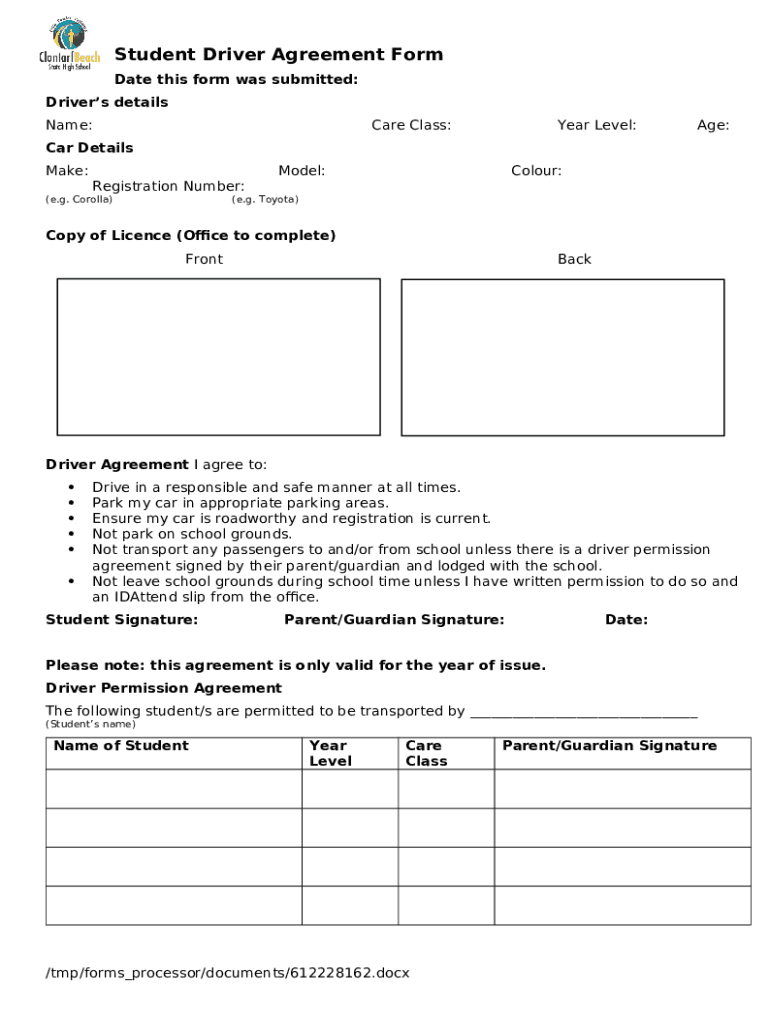 Instructions for the form clontarfbeachshs.eq.edu.auSupportAndResourcesStudent driver agreement - Clontarf Beach State High School