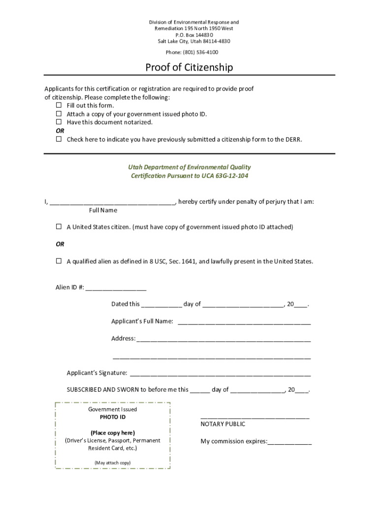 Get the free PDF Proof of Citizenship - Utah DEQ Document Repository
