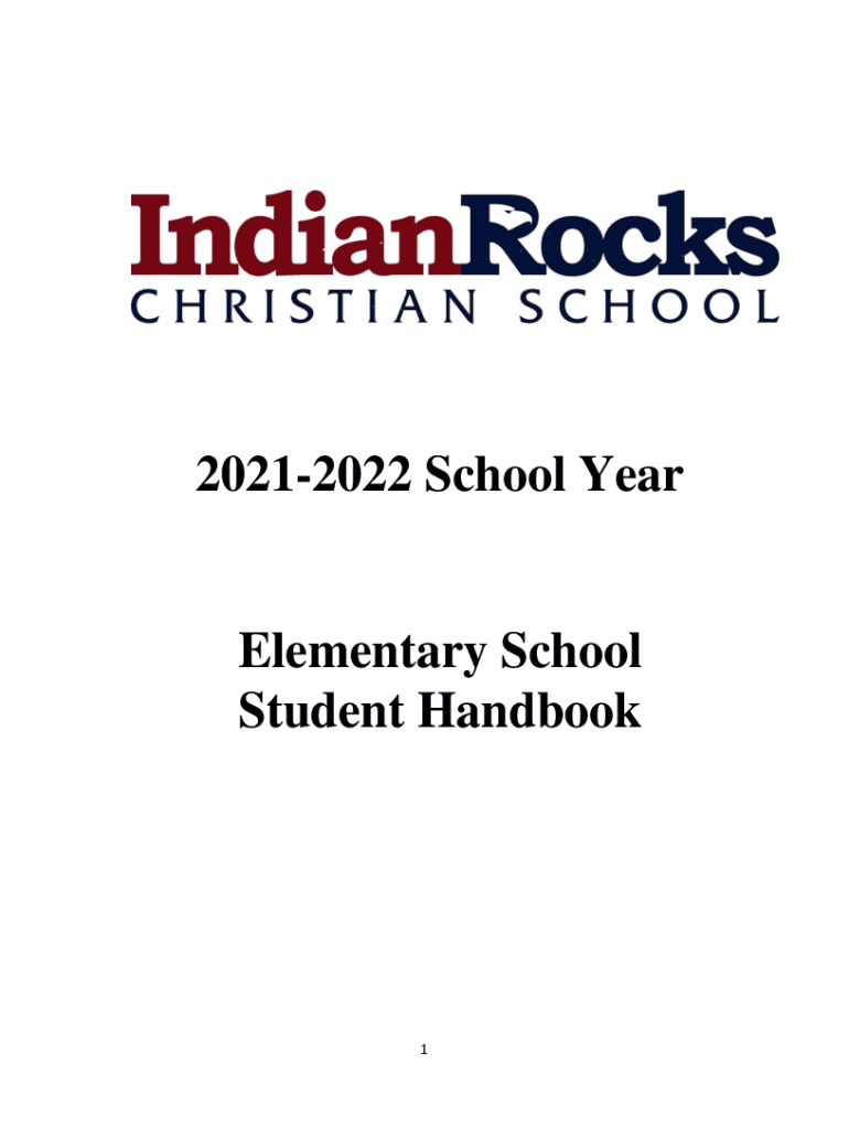 20212022 School YearElementary School Student Handbook1Indian Rocks Christian School A Ministry of Indian Rocks Baptist Church 202122 Elementary School Student Handbook Founded:1984Accredited Kindergarten12th