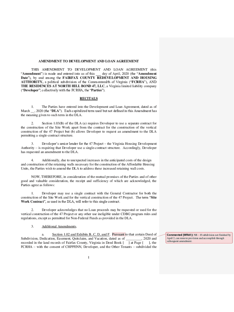 Get the free www.fairfaxcounty.govprocurementsitesAMENDMENT TO DEVELOPMENT AND LOAN AGREEMENT Ame...