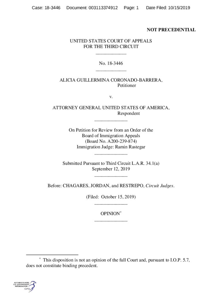 Case: 183446Document: 003113374912Page: 1Date Filed: 10/15/2019NOT PRESIDENTIAL