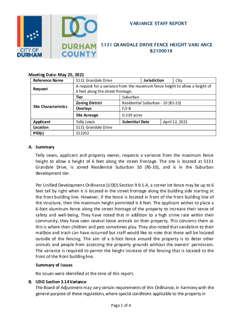 Get the free B2100018 Staff Report for 5131 Grandale Drive Fence Height Variance