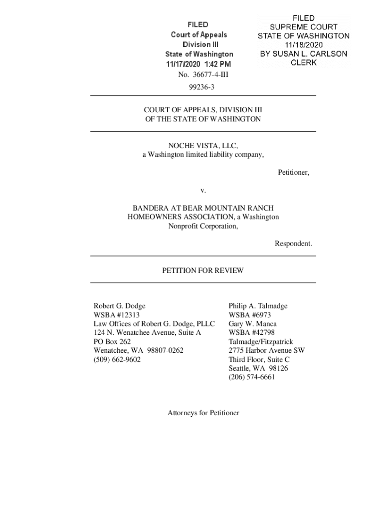FILED Court of Appeals Division Ill State of Washington1111712020 1:42 PM No. 366774III 992363 COURT OF APPEALS, DIVISION III OF THE STATE OF WASHINGTONNOCHE VISTA, LLC, a Washington limited liability