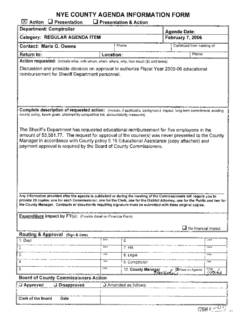 Get the free NYE COUNTY AGENDA INFORMATION FORM El Action Presentation Presentation ...