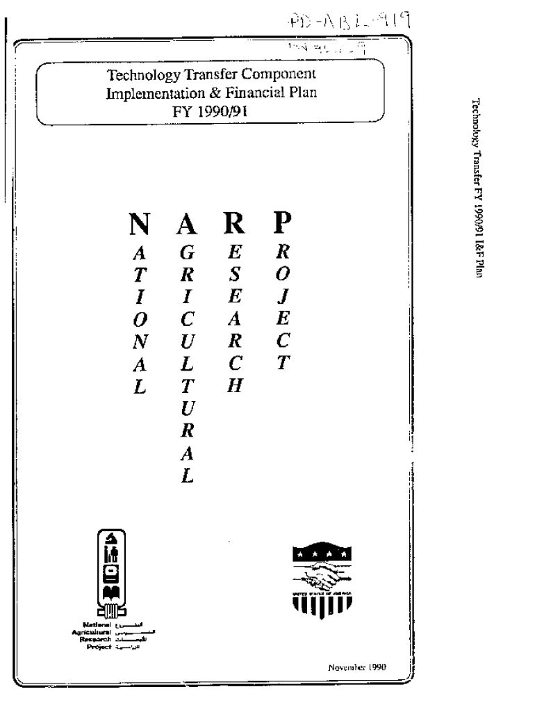 Technology Transfer ComponentImplementation & Financial Plan FY 1990/910 N A R P AGENTS 0 N A LI C U L T U R A LE A R C H0 J E C Elite WIOTAIIIMAgriculualR:a., ch November 1990ARAB REPUBLIC OF EGYPT