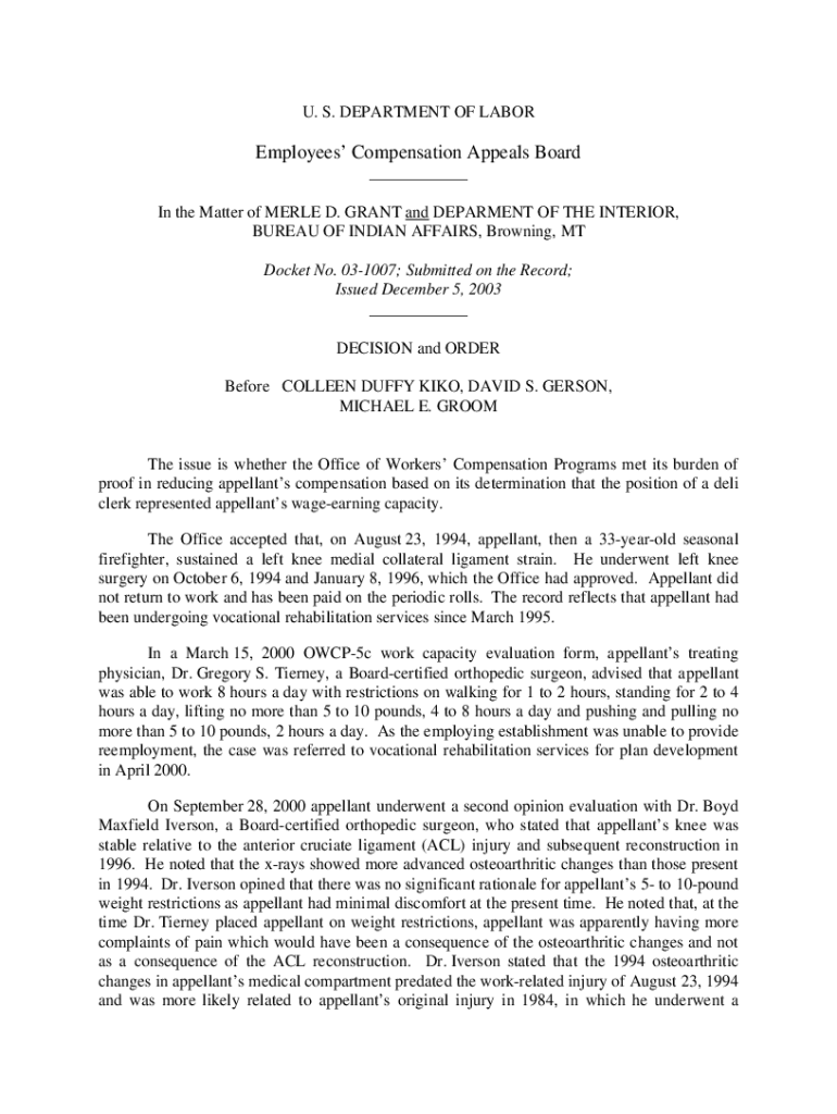 Get the free 03-1007: MERLE D. GRANT and DEPARMENT OF THE INTE...