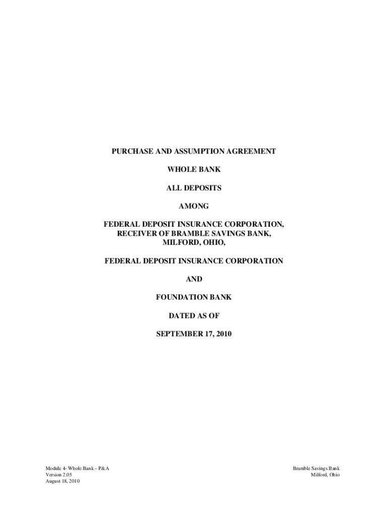 Financial institutions or parties involved in a purchase and assumption transaction are required to file the cocodoccomform14867554-purchase-and-assumptionpurchase and assumption agreement.