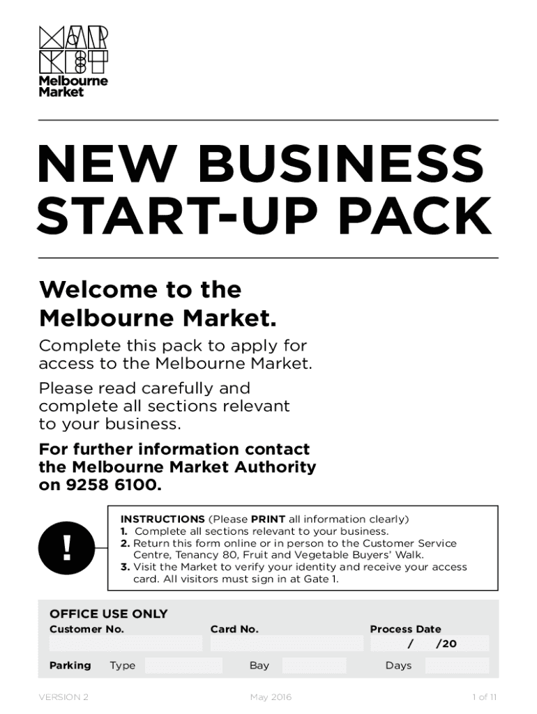 NEW BUSINESS STARTUP PACK Mono Positive×Mono Reverse×ShorthandWelcome to the Melbourne Market. Complete this pack to apply for access to the Melbourne Market. Please read carefully and complete