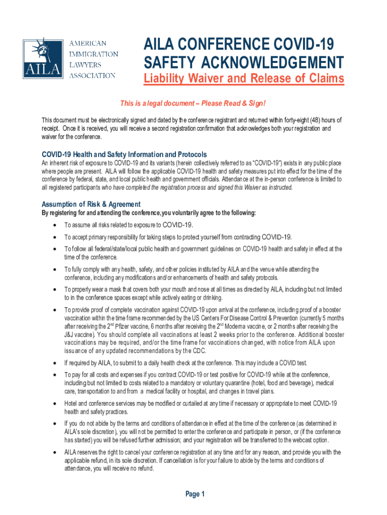 VILA CONFERENCE COVID-19 SAFETY ACKNOWLEDGEMENTLiability Waiver and Release of Claims This is a legal document Please Read & Sign! This document must be electronically signed and dated by the conference