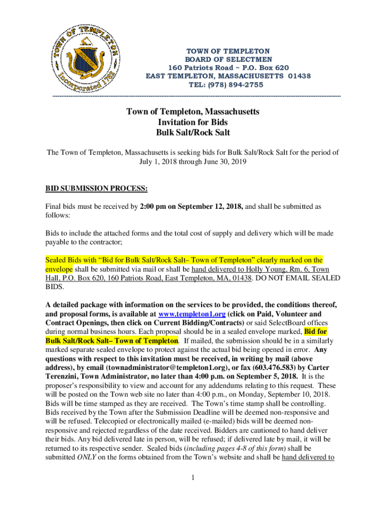 Get the free Town of Templeton, Massachusetts Invitation for Bids Bulk Salt/Rock ...