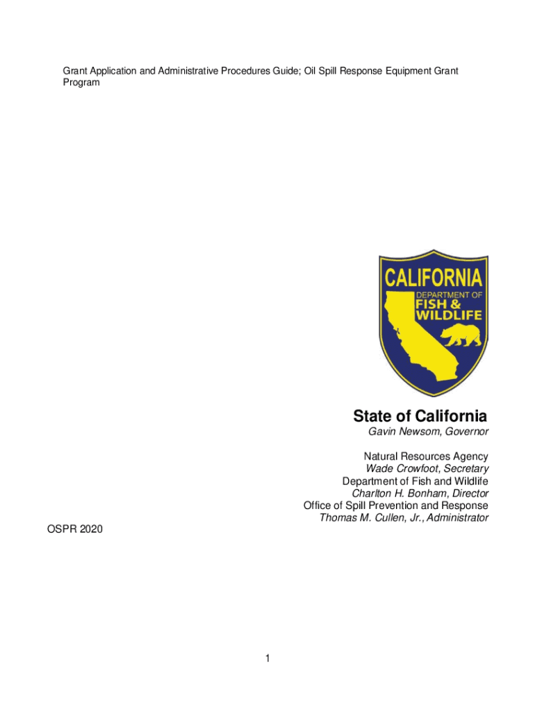 Grant Application and Administrative Procedures Guide; Oil Spill Response Equipment Grant ProgramState of California Gavin Newsom, Governor Natural Resources Agency Wade Crowfoot, Secretary Department