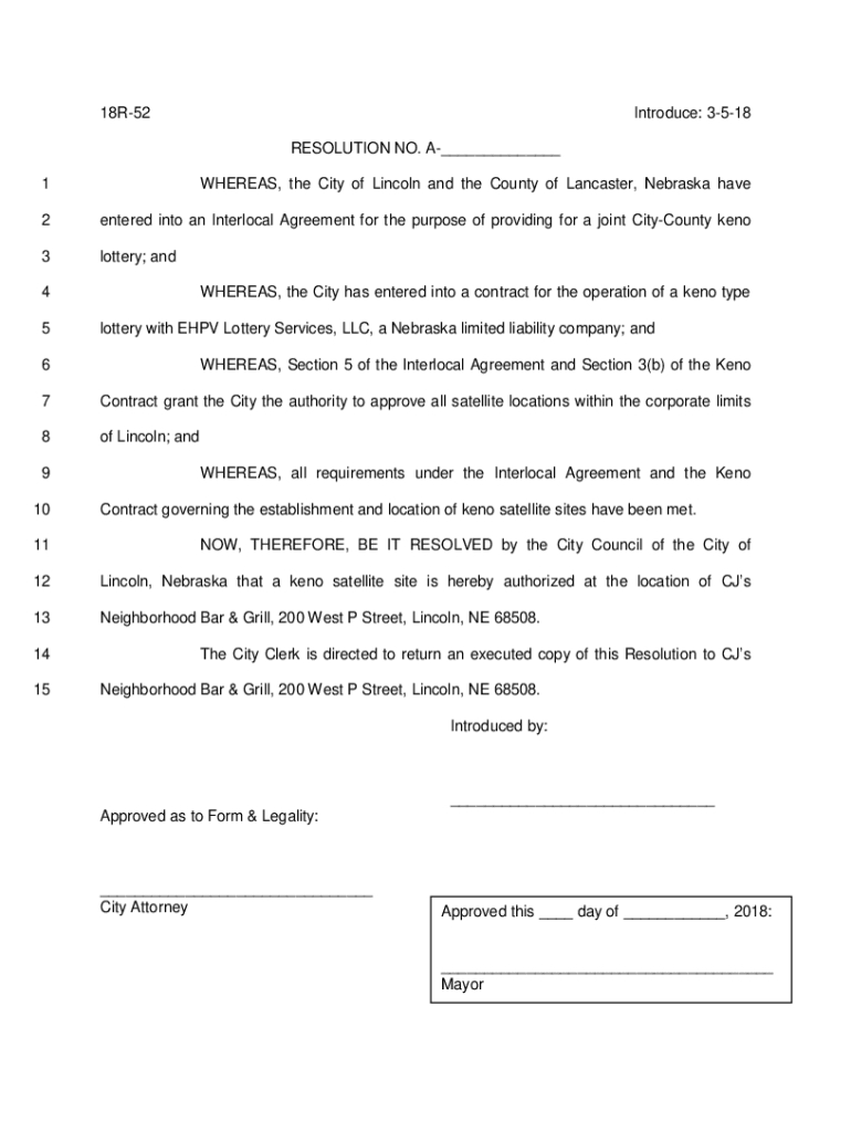 18R52Introduce: 3518 RESOLUTION NO. A___1WHEREAS, the City of Lincoln and the County of Lancaster, Nebraska have2entered into an Interlocal Agreement for the purpose of providing for a joint CityCounty