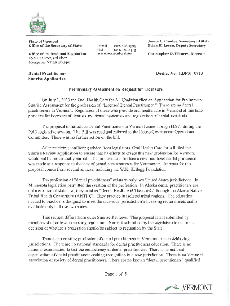 State of Vermont Office of the Secretary of State Office of Professional Regulation 89 Main Street, 3rd Floor Montpelier, VT 0562034028028281505 [fax] 8028282465 WWW .sec.state. Vt. us [phone]James