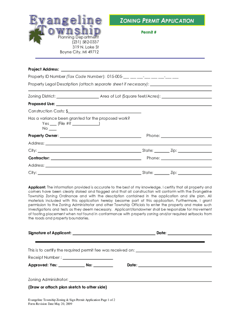 ZONING PERMIT APPLICATION Permit # Planning Department (231) 5820337 319 N. Lake St Boyne City, MI 49712Project Address: Property ID Number (Tax Code Number): 015005___ ___ ______ ___ ______ ___ Property