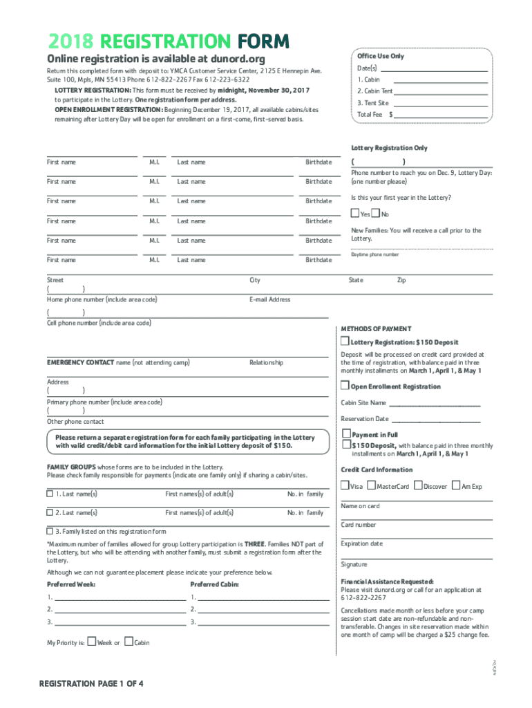 2018 REGISTRATION Formalize registration is available at Dunford. Office Use OnlyReturn this completed form with deposit to: YMCA Customer Service Center, 2125 E Hennepin Ave. Suite 100, MPLS, MN