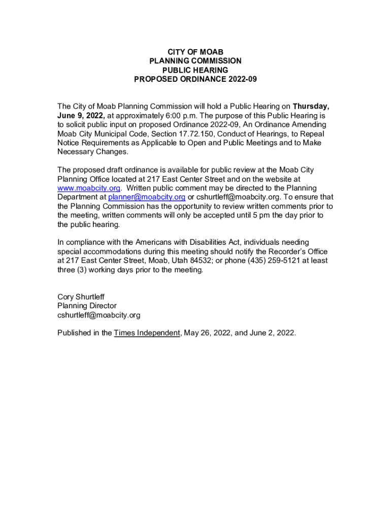 Get the free www.utah.govpmnfilesCITY OF MOAB PLANNING COMMISSION PUBLIC HEARING PROPOSED ...