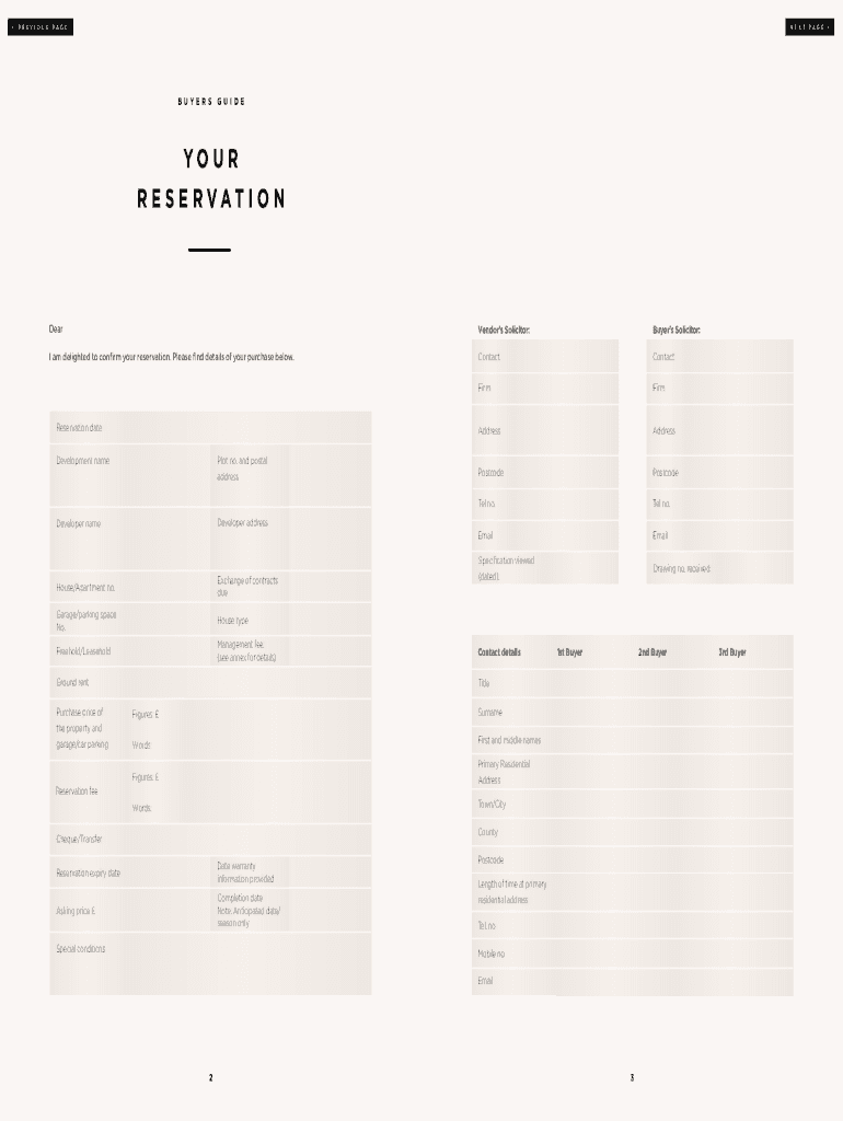 R E S E R VAT I O NDearVendors Solicitor:Buyers Solicitor:I am delighted to confirm your reservation. Please find