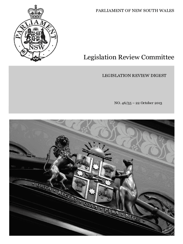 PARLIAMENT OF NEW SOUTH WALESLegislation Review Committee LEGISLATION REVIEW DIGEST NO. 46/55 22 October 2013New South Wales Parliamentary Library cataloguinginpublication data: New South Wales. Parliament.